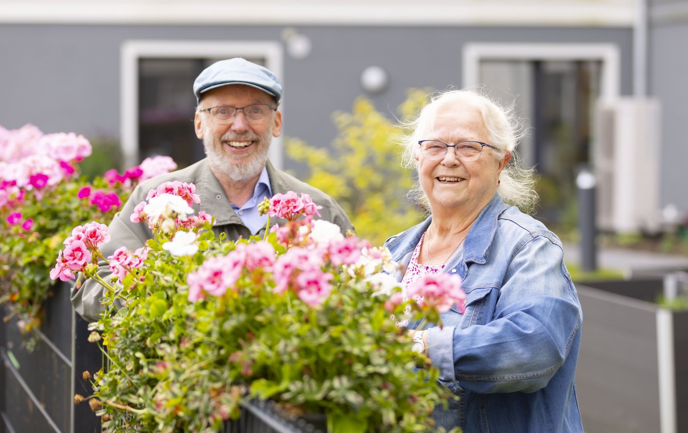 Unsere Betreuungs- und Pflegekräfte ermöglichen einen begleiteten Spaziergang im hauseigenen Garten. Im Außenbereich stehen Bänke zum Erholen zur Verfügung. Alle Fenster sind schallgeschützt und Terrassen und Bewohnerbalkone sind zum grünen ruhigen Innenhof ausgerichtet.
