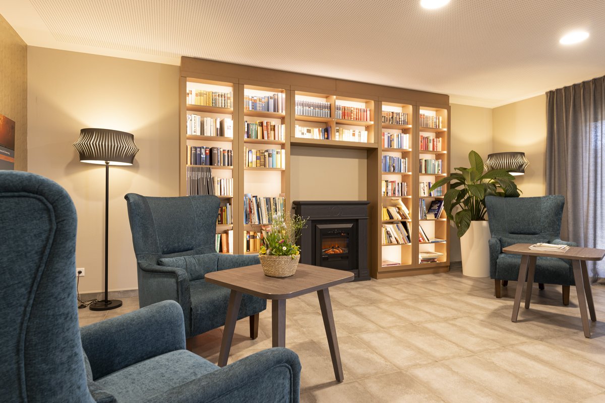 • Die gemütliche Bibliothek der Seniorenresidenz lädt zum Entspannen ein