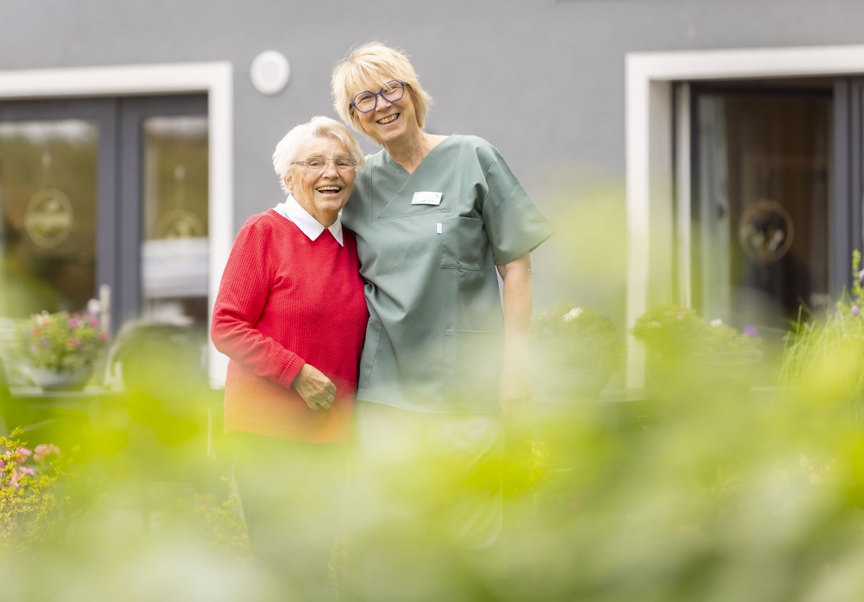 Unsere Betreuungs- und Pflegekräfte ermöglichen einen begleiteten Spaziergang im hauseigenen Garten. Im Außenbereich stehen Bänke zum Erholen zur Verfügung. Alle Fenster sind schallgeschützt und Terrassen und Bewohnerbalkone sind zum grünen ruhigen Innenhof ausgerichtet.