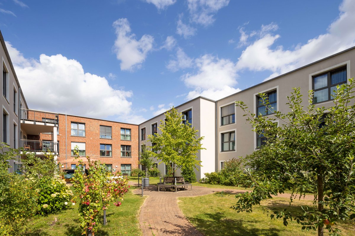 Unsere Betreuungs- und Pflegekräfte ermöglichen begleitete Spaziergänge im hauseigenen Garten. Im Außenbereich stehen Bänke zum Erholen zur Verfügung. Alle Fenster sind schallgeschützt, und Terrassen sowie Bewohnerbalkone sind zum grünen, ruhigen Innenhof ausgerichtet.